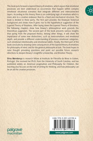This book puts forward a layered theory of emotions, which argues that emotional processes are best understood as occurrences that happen within complex emotional situational scenarios that integrate different and interconnected layers. According to this theory, there is an underlying logic of emotions which is more akin to a creative endeavor than to a fixed and mechanical structure. The book is divided in three parts. The first part provides the Deweyan historical background and shows how it gives rise to the hypothetical suggestion of the Layered Theory of Emotions. After laying down the Layered Theory of Emotions, the following chapters show how Dewey's philosophical work grounds the theoretical suggestion. The second part of the book presents various insights that spring from the proposed theory. Among other things, it will show the importance of some new distinctions, such as meta-emotions and emotional depth, and provide a different understanding of previous emotional categories, such emotional intentionality and emotional habits. Finally, the third part of the book concludes by drawing some consequences of the layered theory of emotions for philosophy of mind, and for the general philosophical task. The book hopes to raise thought provoking questions and point out possible future research directions to deepen Dewey's insightful scholarship, and Emotion Theory.
