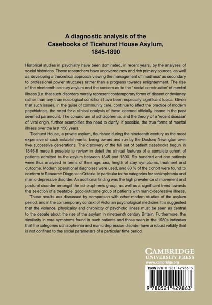 Detailed review of the clinical features of a complete cohort of patients admitted to the Ticehurst House asylum between 1845 and 1890.