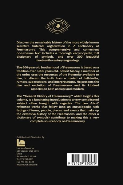 Discover the remarkable history of the most widely known secretive fraternal organization in A Dictionary of Freemasonry. This comprehensive and convenient one-volume text includes a thorough encyclopedia, full dictionary of symbols, and over 300 beautiful nineteenth-century engravings. The 600-year-old brotherhood of Freemasons is based on a tradition over 3,000 years old. Robert Macoy, a member of the order, uses the resources of the Fraternity available to him, to discern the truth from a myriad of half-truths, rumors, superstitions, and interpretations. He presents the rise and evolution of Freemasonry and its kindred association both ancient and modern. The "General History of Freemasonry," which begins this volume, is a fascinating introduction to a very complicated subject often fraught with vagaries. The two A-to-Z reference works that follow (one an encyclopedia with listings of terms, people, places, and events that make up the extensive history of the Freemasons, and the other a dictionary of symbols) contribute to making this a very complete sourcebook on Freemasonry. From Aaron, the Abelites, and the All-Seeing Eye to the Year of Masonry, Zenith, and the Rite of Zinnendorf, this is a remarkably accessible book on a subject that runs through the course of human history. Robert Macoy (1815-1895), well known for his role in establishing the Order of the Eastern Star, earned the 33° and held many important positions with the Fraternity, such as past Deputy Grand Master and Grand Secretary of New York, as well as Grand Recorder of the Grand Commandery of New York. Founder of one of the largest Masonic publishing, regalia, and supply houses, he published extensively on Freemasonry and authored a number of books, including The Book of the Lodge and True Masonic Guide.
