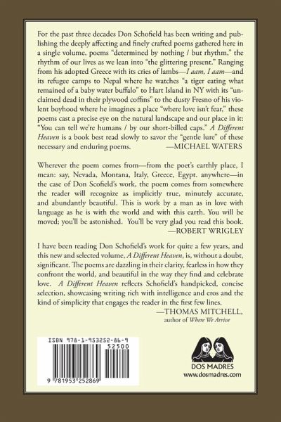 Celebrating four decades of living in Greece, A DIFFERENT HEAVEN: NEW AND SELECTED POEMS joins the more prominent poems from the author's five previous collections (three full length books and two chapbooks) with more recent work and a sampling of translations from modern Greek that have influenced his writing and continue to resonate off it. Taken together, the poems in this collection chart one American's experience of living in a part of the world where the ancient and modern, the urban and rural, and the mythical and mundane intermingle in wondrous and sometimes disconcerting ways. As the poems go deeper into the land, language and culture the author has come to embrace, they engage in an ongoing dialogue with such ancients as Homer, Herodotus, Plato and Aristotle. Other poems speak in the voice of marginalized biblical figures, such as Hagar, Joseph and Lazarus. Earlier free verse looks out at the world from within Egyptian sarcophagi and beneath the gilded surface of Byzantine icons. More recent blank verse and sonnets interact with shepherds and poets; painters and refugees; archaeologists, cemetery workers and assorted others who people the landscape that he now calls home.