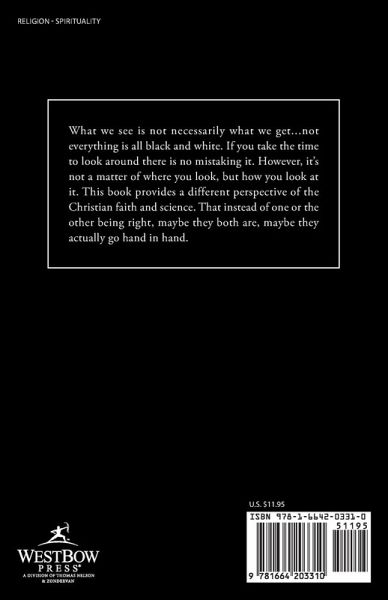 What we see is not necessarily what we get...not everything is all black and white. If you take the time to look around there is no mistaking it. However, it's not a matter of where you look, but how you look at it. This book provides a different perspective of the Christian faith and science. That instead of one or the other being right, maybe they both are, maybe they actually go hand in hand.