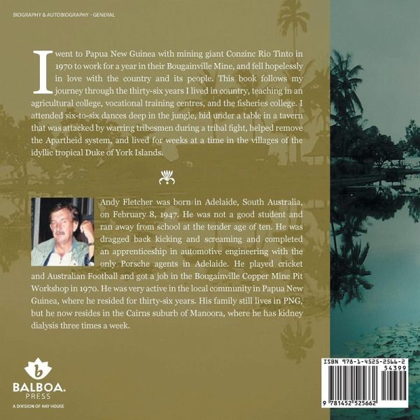 I went to Papua New Guinea with Mining giant Conzinc Rio Tinto in 1970 to work for a year in their Bougainville Mine, and fell hopelessly in love with the country, and its people. This book follows my journey through the thirty six years I lived in country. Teaching in an Agricultural College, Vocational Training Centres and the Fisheries College. I attended six to six dances deep in the jungle, hid under a table in a tavern that was attacked by warring tribesmen during a tribal fight, helped remove the Apartheid system, and lived for weeks at a time in the Villages of the idyllic Tropical Duke of York Islands…mehr