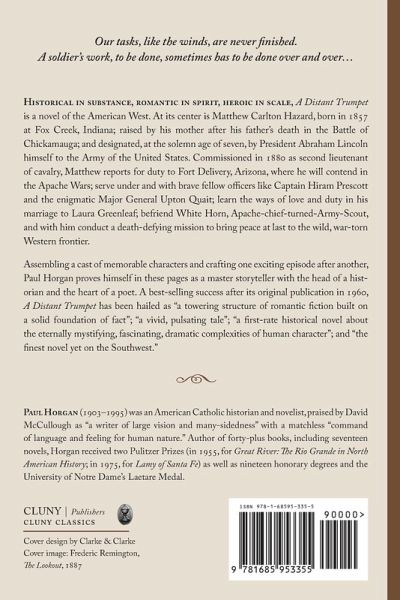 Historical in substance, romantic in spirit, heroic in scale, A Distant Trumpet is a novel of the American West. At its center is Matthew Carlton Hazard, born in 1857 at Fox Creek, Indiana; raised by his mother after his father's death in the Battle of Chickamauga; and designated, at the solemn age of seven, by President Abraham Lincoln himself to the Army of the United States. Commissioned in 1880 as second lieutenant of cavalry, Matthew reports for duty to Fort Delivery, Arizona, where he will contend in the Apache Wars; serve under and with brave fellow officers like Captain Hiram Prescott and the enigmatic Major General Upton Quait; learn the ways of love and duty in his marriage to Laura Greenleaf; befriend White Horn, Apache-chief-turned-Army-Scout, and with him conduct a death-defying mission to bring peace at last to the wild, war-torn Western frontier. Assembling a cast of memorable characters and crafting one exciting episode after another, Paul Horgan proves himself in these pages as a master storyteller with the head of a historian and the heart of a poet. A best-selling success after its original publication in 1960, A Distant Trumpet has been hailed as "a towering structure of romantic fiction built on a solid foundation of fact"; "a vivid, pulsating tale"; "a first-rate historical novel about the eternally mystifying, fascinating, dramatic complexities of human character"; and "the finest novel yet on the Southwest."