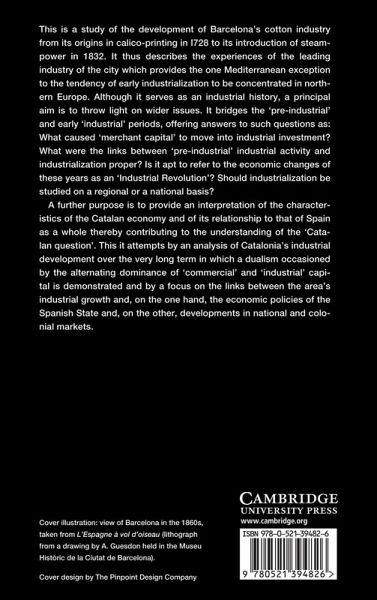 This book, first published in 1992, is a study of the development of Barcelona's cotton industry from its origins in calico-printing in 1728 to its introduction of steampower in 1832. It thus describes the experiences of the leading industry of the city, and one which provides the only Mediterranean exception to the tendency of early industrialization to be concentrated in northern Europe. The book bridges the 'pre-industrial' and early 'industrial' periods, offering answers to such questions as: what caused 'merchant capital' to move into industrial investment? what were the links between 'pre-industrial' industrial activity and industrialization proper? is it apt to refer to the economic changes of these years as an 'industrial revolution'? should industrialization be studied on a regional or a national basis? A further purpose is to provide an interpretation of the characteristics of the Catalan economy and of its relationship to that of Spain as a whole thereby contributing to the understanding of the 'Catalan question'.
