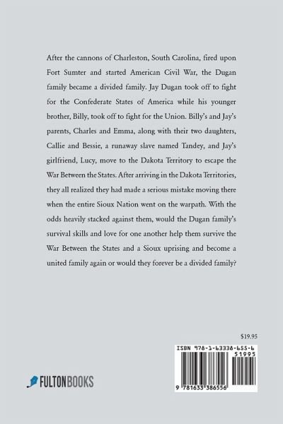 After the cannons of Charleston, South Carolina, fired upon Fort Sumter and started American Civil War, the Dugan family became a divided family. Jay Dugan took off to fight for the Confederate States of America while his younger brother, Billy, took off to fight for the Union. Billy’s and Jay’s parents, Charles and Emma, along with their two daughters, Callie and Bessie, a runaway slave named Tandey, and Jay’s girlfriend, Lucy, move to the Dakota Territory to escape the War Between the States. After arriving in the Dakota Territories, they all realized they had made a serious mistake moving there when the entire Sioux Nation went on the warpath. With the odds heavily stacked against them, would the Dugan family’s survival skills and love for one another help them survive the War Between the States and a Sioux uprising and become a united family again or would they forever be a divided family?