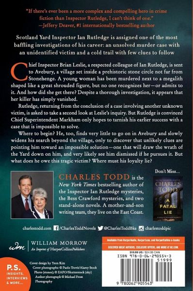 "Todd's astute character studies . . . offer a fascinating cross section of postwar life. . . . A satisfying puzzle-mystery." — The New York Times Book Review  Scotland Yard Inspector Ian Rutledge is assigned one of the most baffling investigations of his career: an unsolved murder case with an unidentified victim and a cold trail with few clues to follow  A woman has been murdered at the foot of a megalith shaped like a great shrouded figure. Chief Inspector Brian Leslie, one of the Yard’s best men, is sent to investigate the site in Avebury, a village set inside a prehistoric stone circle not far from Stonehenge. In spite of his efforts, Leslie is not able to identify her, much less discover how she got to Avebury—or why she died there. Her killer has simply left no trace.  Several weeks later, when Ian Rutledge has returned from successfully concluding a similar case with an unidentified victim, he is asked to take a second look at Leslie’s inquiry. But Rutledge suspects Chief Superintendent Markham simply wants him to fail. Leslie was right—Avebury refuses to yield its secrets. But Rutledge slowly widens his search, until he discovers an unexplained clue that seems to point toward an impossible solution. If he pursues it and he is wrong, he will draw the wrath of the Yard down on his head. But even if he is right, he can’t be certain what he can prove, and that will play right into Markham’s game. The easy answer is to let the first verdict stand: Person or persons unknown. But what about the victim? What does Rutledge owe this tragic young woman? Where must his loyalty lie?