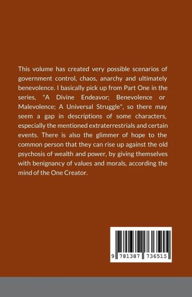 In the first novel of this series, those with strength, fortitude and the willingness to sacrifice, destroyed the evil empire through disorganized revolution. I intentionally used present events as a basis for my context, especially in the early chapters. Part Two of the Divine Endeavor Series focuses on revenge of the evil empire and various forms of retribution and how devastating that simple concept was to the planet.
