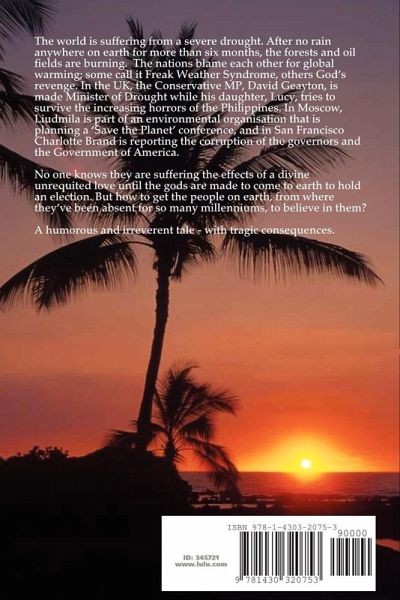The world is suffering from a severe drought. After no rain anywhere on earth for more than six months, the forests and oil fields are burning. The nations blame each other for global warming, some call it Freak Weather Syndrome, others God's revenge. In the UK, the Conservative, David Geayton is made Minister of Drought while his daughter, Lucy, tries to survive the increasing horrors of the Philippines. In Moscow, Liudmila is part of an environmental organisation that is planning a 'Save the Planet' conference and Charlotte Brand is reporting the corruption of the governors in San Francisco and the Government of America. No one knows they are suffering the effects of a divine unrequited love until a long forgotten pantheon of gods are made to come to earth to hold an election. But who, if anyone, will believe them? A Divine War is a humorous and irreverent tale - with serious consequences.