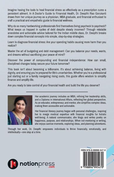 Imagine having the tools to heal financial stress as effectively as a prescription cures a persistent ailment. In A Doctor's Guide to Financial Health, Dr. Deepthi Rao Gorukanti draws from her unique journey as a physician, MBA graduate, and financial enthusiast to craft a practical and empathetic guide to financial wellness. Why do so many hardworking professionals find themselves living paycheck to paycheck? What keeps us trapped in cycles of debt despite steady incomes? Through relatable anecdotes and actionable advice tailored for the Indian middle class, Dr. Deepthi breaks down complex financial concepts into simple, step-by-step strategies. Learn to diagnose financial stress: Are your spending habits causing more harm than you realize? Master the art of budgeting and debt management: Can you balance your needs, wants, and dreams without sacrificing your peace of mind? Discover the power of compounding and financial independence: How can small, disciplined changes today secure your future tomorrow? This book isn't about becoming a billionaire. It's about achieving balance, living with dignity, and ensuring you're prepared for life's uncertainties. Whether you're a professional just starting out or a family navigating rising costs, this guide offers wisdom to simplify finance and amplify life. Are you ready to take control of your financial health and build the life you deserve?