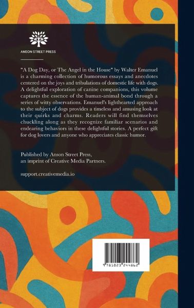 "A Dog Day, or The Angel in the House" by Walter Emanuel is a charming collection of humorous essays and anecdotes centered on the joys and tribulations of domestic life with dogs. A delightful exploration of canine companions, this volume captures the essence of the human-animal bond through a series of witty observations. Emanuel's lighthearted approach to the subject of dogs provides a timeless and amusing look at their quirks and charms. Readers will find themselves chuckling along as they recognize familiar scenarios and endearing behaviors in these delightful stories. A perfect gift for dog lovers and anyone who appreciates classic humor. This work has been selected by scholars as being culturally important, and is part of the knowledge base of civilization as we know it. This work is in the public domain in the United States of America, and possibly other nations. Within the United States, you may freely copy and distribute this work, as no entity (individual or corporate) has a copyright on the body of the work. Scholars believe, and we concur, that this work is important enough to be preserved, reproduced, and made generally available to the public. We appreciate your support of the preservation process, and thank you for being an important part of keeping this knowledge alive and relevant.