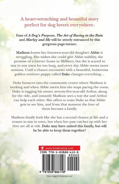 Sometimes the dogs we rescue… also rescue us. A heart-wrenching and beautiful story perfect for dog lovers everywhere. Fans of A Dog’s Purpose, The Art of Racing in the Rain and Marley and Me will be utterly entranced by this gorgeous page-turner. Madison knows her fourteen-year-old daughter Abbie is struggling. She wishes she could give Abbie stability, the promise of a forever home in Millbury, but she is scared to stay in one town for too long, and every day Abbie seems more anxious. Until a chance encounter with a beautiful, boisterous golden retriever puppy called Duke changes everything… Duke bounces into the community centre where Madison is working and when Abbie meets him she stops pacing the room. Duke is tugging his owner, seventy-five-year-old Arthur, along for the ride, and instantly Madison sees a way she and Arthur can help each other. She offers to train Duke so that Abbie gets to see him, and from that moment the four of them become a family. Madison finally feels like she has a second chance at life and a reason to stay in town, but when her past catches up with her they are all at risk. Duke may have united this family, but will he be able to keep them together? A reminder of the unbelievable bonds we form with the dogs in our lives. No matter how broken you are, the unconditional love of a dog can piece you back together. What readers are saying about Casey Wilson: "Perfect for fans of A Dog’s Purpose, The Art of Racing in the Rain and Marley and Me. This book drew me in from the first page… I honestly shed tears reading this wonderful book, I highly recommend this book to anyone, especially dog lovers." Goodreads reviewer, 5 stars "I am completely demolished, this was the most heart-warming, sweet and beautiful book I've read in a while. It grabbed me and just stole my heart… I can't even express my feelings, just read it!" Goodreads reviewer, 5 stars "A totally heart and gut-wrenching novel… I read the last couple chapters through tears as it touched me very deeply. I absolutely recommend this page-turner! You will not want to put it down!" The Write Review, 5 stars "Wow!... This story is one of heartbreak, love, loss, forgiveness and overcoming! It’s a wonderful story about the peace that comes when you find your sweet, furry soulmate and I believe everyone has one!... We can learn so much from a dog and this book captured that perfectly!" I Have Lived a Thousand Times, 5 stars "Omg! Omg! Omg!... This book just breaks my heart into thousand pieces." Goodreads reviewer, 5 stars "If I could rate this 10 stars, I would!... This book drew me in from the first page… I definitely shed some tears reading this. If you love dogs and are looking for a book with REAL meaning, grab this one!" Goodreads reviewer, 5 stars "I so so so totally, utterly loved this book… If you are a dog lover, you will love this story too. If you are wondering why people love their furry friends so much, you should read it and maybe you will understand why." B for Book Review, 5 stars