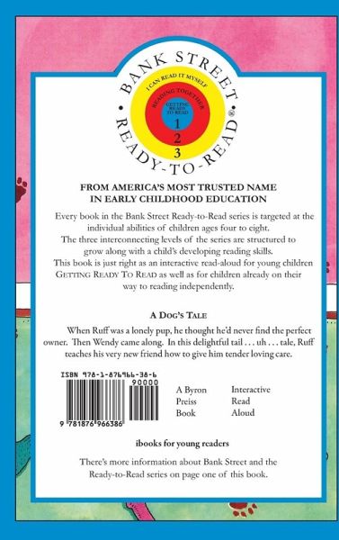 ¿¿A DOG'S TALE When Ruff was a lonely pup, he thought he'd never find the perfect owner. Then Wendy came along. In this delightful tail . . . uh . . . tale, Ruff teaches his very new friend how to give him tender loving care. FROM AMERICA'S MOST TRUSTED NAME IN EARLY CHILDHOOD EDUCATION More than seventy years of educational research and innovative teaching have given the Bank Street College of Education the reputation as America's most trusted name in early childhood education. Because no two children are exactly alike in their development, we have designed the Bank Street Ready-to-Read series in three levels to accommodate the individual stages of reading readiness of children ages four through eight. • Level 1: GETTING READY TO READ- (PRE-K to GRADE 1) Books are perfect for reading aloud with children who are getting ready to read or are just beginning to read words or phrases. • Level 2: READING TOGETHER-(GRADES 1 to 3) Books are written especiallly for children who are on their way to reading independently but who may need help. • Level 3: I CAN READ IT MYSELF-(GRADES 2 to 3) Books are designed for children able to read on their own. They also can be enjoyed as read-alouds.