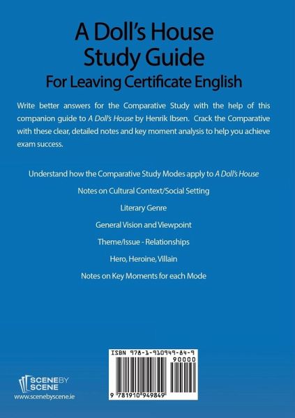 A Doll's House Study GuideFor Leaving Certificate English Write better answers for the Comparative Study with the help of this companion guide to A Doll's House by Henrik Ibsen. Crack the Comparative with these clear, detailed notes and key moment analysis to help you achieve exam success. Understand how the Comparative Study Modes apply to A Doll's HouseNotes on Cultural Context/Social SettingLiterary GenreGeneral Vision and ViewpointTheme/Issue - RelationshipsHero, Heroine, VillainNotes on Key Moments for each Mode