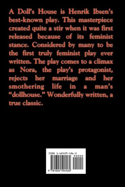 A Doll's House is Henrik Ibsen's best-known play. This masterpiece created quite a stir when it was first released because of its feminist stance. Considered by many to be the first truly feminist play ever written. The play comes to a climax as Nora, the play's protagonist, rejects her marriage and her smothering life in a man's "dollhouse." Wonderfully written, a true classic.