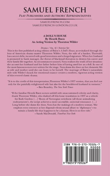 An adaptation of Henrik Ibsen's most notable play about a waning marriage, and the social constructs between a husband and wife. Thornton Wilder's acting version of A Doll's House premiered on Broadway at the Morsco Theatre in December 1937, under the direction of Jed Harris.