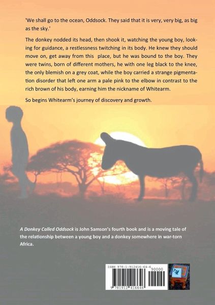 'We shall go to the ocean, Oddsock. They said that it is very, very big, as big as the sky.' The donkey nodded its head, then shook it, watching the young boy, looking for guidance, a restlessness twitching in its body. He knew they should move on, get away from this place, but he was bound to the boy. They were twins, born of different mothers, he with one leg black to the knee, the only blemish on a grey coat, while the boy carried a strange pigmentation disorder that left one arm a pale pink to the elbow in contrast to the rich brown of his body, earning him the nickname of Whitearm. So begins Whitearm's journey of discovery and growth