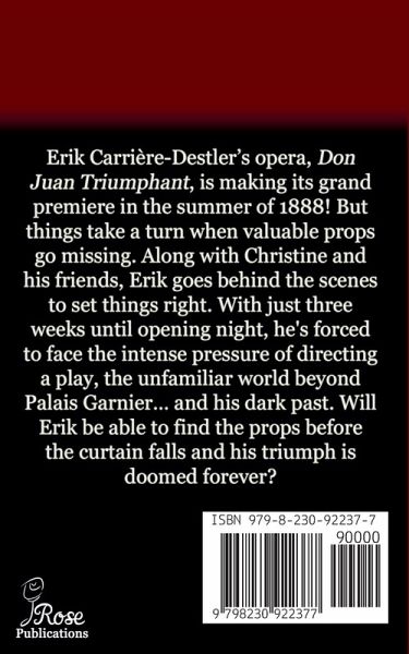 Erik Carrière-Destler's opera, Don Juan Triumphant, is making its grand premiere in the summer of 1888! But things take a turn when valuable props go missing. Along with Christine and his friends, Erik goes behind the scenes to set things right. With just three weeks until opening night, he's forced to face the intense pressure of directing a play, the unfamiliar world beyond Palais Garnier... and his dark past. Will Erik be able to find the props before the curtain falls and his triumph is doomed forever?