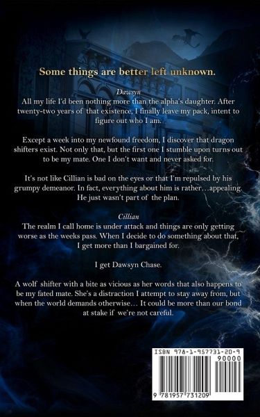 Some things are better left unknown. Dawsyn All my life I'd been nothing more than the alpha's daughter. After twenty-two years of that existence, I finally leave my pack, intent to figure out who I am. Except a week into my newfound freedom, I discover that dragon shifters exist. Not only that, but the first one I stumble upon turns out to be my mate. One I don't want and never asked for. It's not like Cillian is bad on the eyes or that I'm repulsed by his grumpy demeanor. In fact, everything about him is rather...appealing. He just wasn't part of the plan. Cillian The realm I call home is under attack and things are only getting worse as the weeks pass. When I decide to do something about that, I get more than I bargained for. I get Dawsyn Chase. A wolf shifter with a bite as vicious as her words that also happens to be my fated mate. She's a distraction I intend to stay away from, but when the world demands otherwise... It could be more than our bond at stake if we're not careful. This is a slow burn Paranormal Romance trilogy set in the Mystics and Mayhem world, but can be read on its own without major spoilers to past series. If you love fated mates who don't fall instantly in love, swoon-worthy dragon heroes, and feisty heroines, then you don't want to miss out on these books!