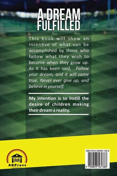 This book will show an incentive of what can be accomplished by those who follow what they wish to become when they grow up. As it has been said, "Follow your dream, and it will come true. Never ever give up, and believe in yourself. My intention is to instill the desire of children making their dream a reality.