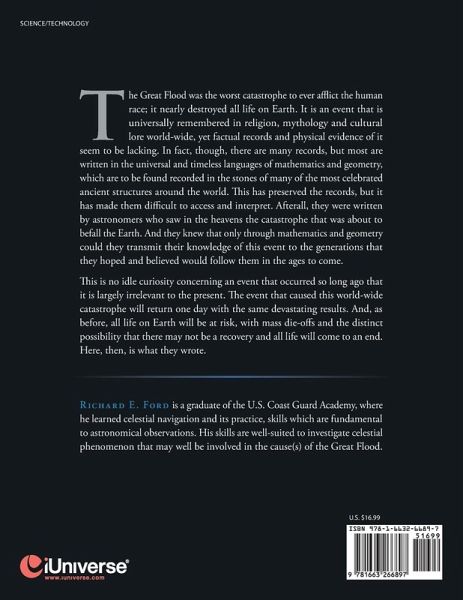 The Great Flood was the worst catastrophe to ever a ict the human race; it nearly destroyed all life on Earth. It is an event that is universally remembered in religion, mythology and cultural lore world-wide, yet factual records and physical evidence of it seem to be lacking. In fact, though, there are many records, but most are written in the universal and timeless languages of mathematics and geometry, which are to be found recorded in the stones of many of the most celebrated ancient structures around the world. is has preserved the records, but it has made them di cult to access and interpret. Afterall, they were written by astronomers who saw in the heavens the catastrophe that was about to befall the Earth. And they knew that only through mathematics and geometry could they transmit their knowledge of this event to the generations that they hoped and believed would follow them in the ages to come. is is no idle curiosity concerning an event that occurred so long ago that it is largely irrelevant to the present. e event that caused this world-wide catastrophe will return one day with the same devastating results. And, as before, all life on Earth will be at risk, with mass die-o s and the distinct possibility that there may not be a recovery and all life will come to an end. Here, then, is what they wrote.