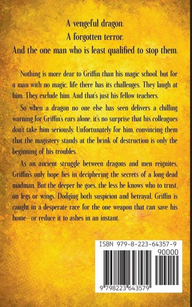 A vengeful dragon. A forgotten terror. And the one man who is least qualified to stop them. Nothing is more dear to Griffin than his magic school, but for a man with no magic, life there has its challenges. They laugh at him. They exclude him. And that's just his fellow teachers. So when a dragon no one else has seen delivers a chilling warning for Griffin's ears alone, it's no surprise that his colleagues don't take him seriously. Unfortunately, convincing them that the magistery stands at the brink of destruction is only the beginning of his troubles. As an ancient struggle between dragons and men reignites, Griffin's only hope lies in deciphering the secrets of a long-dead madman. But the deeper he goes, the less he knows who to trust, on legs or wings. Dodging both suspicion and betrayal, Griffin is caught in a desperate race for the one weapon that can save his home-or reduce it to ashes in an instant.