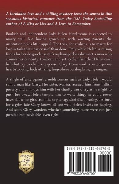 A forbidden love and a chilling mystery tease the senses in this sensuous historical romance from the USA Today bestselling author of A Kiss of Lies and A Love to Remember. Bookish and independent Lady Helen Hawkestone is expected to marry well. But, having grown up with warring parents, the institution holds little appeal. The trick, she realizes, is to marry for love-a task that's easier said than done. Only while Helen is raising funds for her do-gooder sister's orphanage does she meet a man who arouses her curiosity. Lowborn and yet so dignified that Helen can't help but try to elicit a response, Clary Homeward is an enigma-a heart-stopping, body-stirring, forget-her-social-upbringing enigma. A single offense against a noblewoman such as Lady Helen would ruin a man like Clary. Her sister, Marisa, rescued him from hellish poverty and employs him with her charity work. Try as he might to push her away, Helen tempts him to want things he could never have. But when girls from the orphanage start disappearing, destined for a grim fate Clary knows all too well, Helen insists on helping. And soon Clary wonders whether something more were not just possible but inevitable-even right.