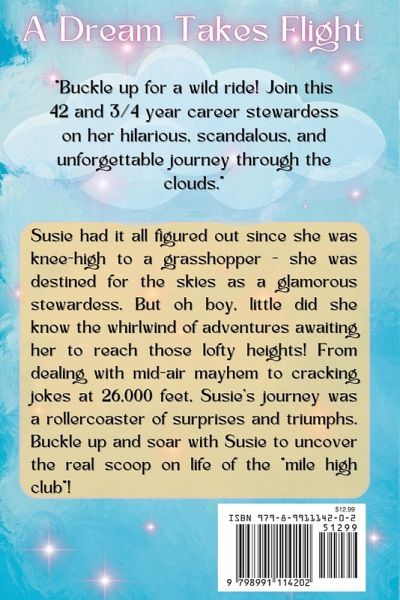 A behind the scenes look at what it means to be a stewardess in the 1960's to 2002. The transition of the industry and the tell all stories you always wanted to know, that no one was going to tell, until now. Susie Q doesn't hold back from the intimate musings to the loud occurrences happening 26,000 feet in the air. Learning how the industry treated women from then until now. Crazy wild stories that will have you laughing and gasping for air. Susie is a girl that doesn't allow anyone or anything to keep her from her dreams. With limited options nothing was going to stop Susie from joining the mile high club and living her most glamorous life.