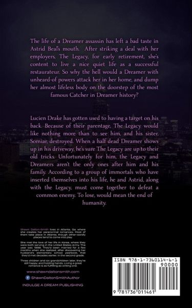 The life of a Dreamer assassin has left a bad taste in Astrid Beal's mouth. After striking a deal with her employer, the Legacy, for early retirement, she's content to live a nice quiet life as a successful restaurateur. So why the hell would a Dreamer with unheard-of powers attack her in her home and dump her almost lifeless body on the doorstep of the most famous Catcher in Dreamer history? Lucien Drake has gotten used to having a target on his back. Because of their parentage, the Legacy would like nothing more than to see him, and his sister, Somiar, destroyed. When a half dead Dreamer shows up in his driveway, he's sure the Legacy are up to their old tricks. Unfortunately for him, the Legacy and Dreamers aren't the only ones he has to worry about. According to a group of immortals who have inserted themselves into his life, he and Astrid, along with The Legacy, must come together to defeat a common enemy. To lose would mean the end of humanity.