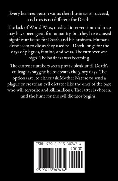 Every businessperson wants their business to succeed, and this is no different for Death. The lack of World Wars, medical intervention and soap may have been great for humanity but they have caused significant issues for Death and his business. Humans just don't seem to die as they used to. Death longs for the days of plagues, famine, and wars. The turnover was great, the business was booming. There seems to be no solution to Death's predicament until Death's colleagues suggest he re-creates the glory days. The options are to either ask Mother Nature to send a plague or create an evil dictator like the ones of the past who will terrorise and kill millions. The latter is chosen and the hunt for the evil dictator begins.