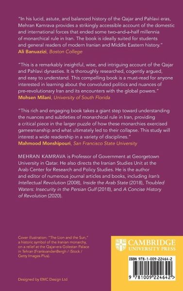 "This book examines the political histories of Iran's last two monarchical dynasties, the Qajars and the Pahlavis. In its long dynastic history, several monarchs and the larger dynasties they represented assumed themselves to be the apogees of imperial rule. But following the decline and eventual collapse of Safavid rule in the 1720s, except for brief interludes such as the reigns of Nader Shah Afshar from 1737 to 1747 and Karim Khan Zand from 1751 to 1779, the country was racked by centrifugal forces, warring tribes, and dynastic pretenders. It was around the time of the second Qajar monarch, Fath Ali Shah, who ascended to the throne in 1797, when dynastic rule similar to what was the norm during the Safavids once again appeared in Iran. The book traces the rise and fall of the Qajars and their successor dynasty, the Pahlavis. The following questions inform the research here. How and why did each of the dynasties rise to power? What domestic and international forces impacted them? What were the characteristics and consequences of that rule? How and why were the two dynasties effective in fulfilling their goals? Even if the Pahlavi narrative that their dynasty represented 2,500 years of monarchical rule in Iran is to be rightly doubted, the monarchy's collapse is of great consequence for the longue durâee of Iranian history. What occurred in Iran in 1978-79 was much more than a political revolution; it was a rupture of historic proportions, a critical juncture after which Iranian history will never have an institution that for centuries had been its centerpiece, that of the monarchy. With the benefit of hindsight, the Qajars and the Pahlavis appear to have represented the last gasps of monarchy in Iran. My hope is for this book to at least partially capture the nuances and subtle complexities of how these dynasties rose, operated, and fell"--