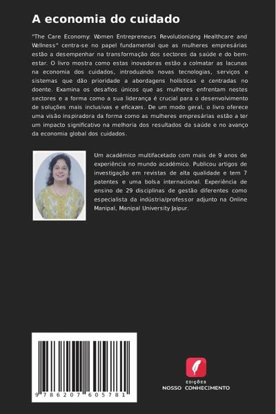"The Care Economy: Women Entrepreneurs Revolutionizing Healthcare and Wellness" centra-se no papel fundamental que as mulheres empresárias estão a desempenhar na transformação dos sectores da saúde e do bem-estar. O livro mostra como estas inovadoras estão a colmatar as lacunas na economia dos cuidados, introduzindo novas tecnologias, serviços e sistemas que dão prioridade a abordagens holísticas e centradas no doente. Examina os desafios únicos que as mulheres enfrentam nestes sectores e a forma como a sua liderança é crucial para o desenvolvimento de soluções mais inclusivas e eficazes. De um modo geral, o livro oferece uma visão inspiradora da forma como as mulheres empresárias estão a ter um impacto significativo na melhoria dos resultados da saúde e no avanço da economia global dos cuidados.