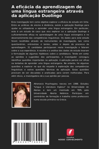 Esta investigação tem como objetivo explorar a eficácia do estudo em linha. Entre as práticas de ensino à distância, existe a aplicação Duolingo para ajudar os utilizadores a aprender uma língua estrangeira. Em particular, este é um estudo de caso que visa explorar se a aplicação Duolingo é suficientemente eficaz na aprendizagem de uma língua estrangeira e no desenvolvimento das competências linguísticas. Os dados para este estudo foram recolhidos através de instrumentos de investigação, tais como questionários, entrevistas e testes, antes e depois do processo de aprendizagem. 31 candidatos participaram nesta investigação e falaram sobre a sua experiência. A recolha e a análise dos dados do estudo levaram à formulação de algumas hipóteses sobre a candidatura. Tendo em conta as opiniões e sugestões dos participantes, o investigador conseguiu identificar questões importantes na aplicação. A aplicação parece ser eficaz na tentativa de aprender uma língua estrangeira. No entanto, há algumas questões a explorar no que diz respeito à exploração das competências linguísticas e outras questões técnicas da aplicação. Estas questões precisam de ser discutidas e analisadas para serem melhoradas. Para além disso, a investigadora dá a sua opinião por pessoa.