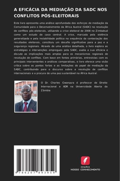 Este livro apresenta uma análise aprofundada dos esforços de mediação da Comunidade para o Desenvolvimento da África Austral (SADC) na resolução de conflitos pós-eleitorais, utilizando a crise eleitoral de 2008 no Zimbabué como um estudo de caso central. A crise, marcada pela violência generalizada e pela instabilidade política na sequência da contestação dos resultados eleitorais, constituiu um desafio significativo para a paz e a segurança regionais. Através de uma análise detalhada, o livro explora as estratégias e intervenções empregues pela SADC, avalia a sua eficácia e discute as implicações mais amplas para os mecanismos regionais de resolução de conflitos. Com base em fontes primárias, entrevistas com os principais intervenientes e análises comparativas, o livro oferece uma visão crítica sobre os pontos fortes e as limitações do papel de mediação da SADC, contribuindo para o discurso sobre a resolução de conflitos internacionais e a procura de uma paz sustentável na África Austral.