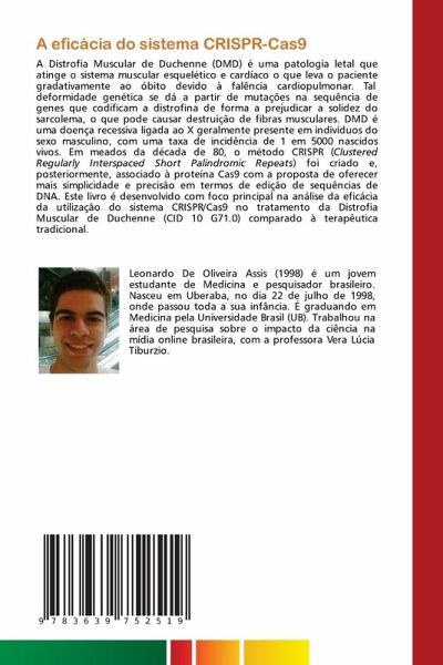 A Distrofia Muscular de Duchenne (DMD) é uma patologia letal que atinge o sistema muscular esquelético e cardíaco o que leva o paciente gradativamente ao óbito devido à falência cardiopulmonar. Tal deformidade genética se dá a partir de mutações na sequência de genes que codificam a distrofina de forma a prejudicar a solidez do sarcolema, o que pode causar destruição de fibras musculares. DMD é uma doença recessiva ligada ao X geralmente presente em indivíduos do sexo masculino, com uma taxa de incidência de 1 em 5000 nascidos vivos. Em meados da década de 80, o método CRISPR (Clustered Regularly Interspaced Short Palindromic Repeats) foi criado e, posteriormente, associado à proteína Cas9 com a proposta de oferecer mais simplicidade e precisão em termos de edição de sequências de DNA. Este livro é desenvolvido com foco principal na análise da eficácia da utilização do sistema CRISPR/Cas9 no tratamento da Distrofia Muscular de Duchenne (CID 10 G71.0) comparado à terapêutica tradicional.