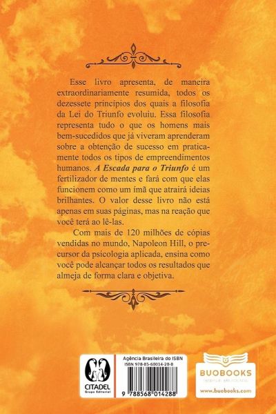 Este livro apresenta, de maneira otimamente resumida, todos os dezessete fatores dos quais a filosofia da Lei do Triunfo evoluiu. Essa filosofia representa tudo o que os homens mais bem-sucedidos que já viveram aprenderam sobre a obtenção de sucesso em praticamente todos os tipos de empreendimentos humanos. A Escada para o Triunfo é um fertilizador de mentes e fará com que elas funcionem como um ímã que atrairá ideias brilhantes. O valor deste livro não está apenas em suas páginas, mas na reação que você terá ao lê-las. Com mais de 120 milhões de cópias vendidas no mundo, Napoleon Hill, o percursor da psicologia aplicada, ensina como você pode alcançar todos os resultados que almeja de forma clara e objetiva.