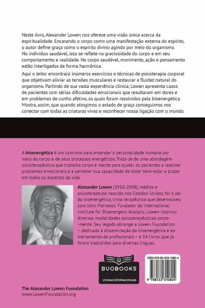 Neste livro, o leitor encontrará inúmeros exercícios e técnicas de psicoterapia corporal que objetivam aliviar as tensões musculares e restaurar a fluidez natural do organismo. Partindo de sua vasta experiência clínica, Lowen apresenta casos de pacientes com sérias dificuldades emocionais que resultaram em dores e em problemas de cunho afetivo, os quais foram resolvidos pela bioenergética. Mostra, assim, que quando atingimos o estado de graça conseguimos nos conectar com todas as criaturas vivas e reconhecer nossa ligação com o mundo. A bioenergética é um caminho para entender a personalidade humana por meio do corpo e de seus processos energéticos. Trata-se de uma abordagem psicoterapêutica que trabalha corpo e mente para ajudar os pacientes a resolver problemas emocionais e a perceber sua capacidade de obter bem-estar e prazer em todos os aspectos da vida.
