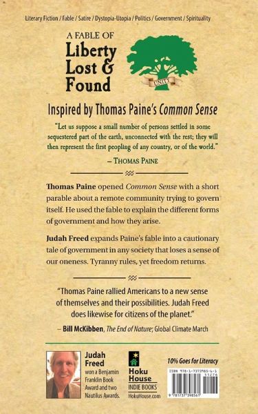 A Fable of Liberty Lost and Found is a short parable offering insights for the hard choices our world faces today. The satiric cautionary tale tells what happens in any society when people lose a sense of our natural oneness. The allegory is inspired by the fable that opens Thomas's Paine's Common Sense. To show the design and purpose of government, Paine imagines a remote community trying to govern itself, showing how the different forms of government arise. His pivotal writings convinced most 18th century colonial Americans to reject monarchy and establish the world's first modern democracy. Today in the early 21st century, award-winning author and seasoned journalist Judah Freed builds on Paine's fable to warn about our nations' corrupt slide into tyranny and collapse. The ending offers hope for reviving democracy. The author's imagination and satire are informed by recent trends and events in the USA and around the world. Synopsis: The short story is told in two parts with 10 sections. Part I tells a tale of conscious people who land on a remote island to escape dystopia. Over the generations, their society goes from utopian anarchy to open democracy, then they choose a republic, which gets corrupted, leading to tyranny and collapse. Part II offers an optimistic alternative ending, a vision of the people instead emerging into an enlightened society. We need all the hope we can get these days. (Reading time: 30 minutes.) Book Backstory: This two-part work of fiction originated as the preamble and epilogue that frame Judah' Freed's nonfiction book, Making Global Sense: Grounded hope for democracy and the earth inspired by Thomas Paine's Common Sense. The parable brackets Freed's reasoning on the power of a billion globally aware people to build our world anew. Because the story stands up on its own, here's the full tale told in a single volume for readers who care about our future on earth.
