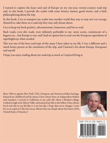 I wanted to explore the heart and soul of Europe on my one-year, twenty-country road trip and, in this book, I provide the reader with some history, humor, good stories, and a little philosophizing about the trip. In this book, I try to transport my reader into another world they may or may not ever occupy themselves; take them on a road trip they may only dream about. I try to keep my book positive, adventuresome, humorous, and fun to read. Back roads, even dirt roads, were infinitely preferable to me: more scenic, reminiscent of a bygone era... but Europe is vast, and I had no option but to seek out the European equivalents of superhighways when needed. This was one of the best road trips of the many I have taken in my life. I was a different and a much better person at the conclusion of the trip, and I learned a lot about Europe, Europeans and myself. I hope you enjoy reading about my road trip as much as I enjoyed living it.