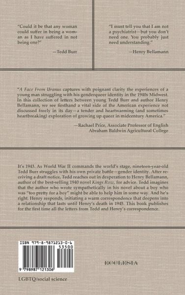 It's 1943. As World War II commands the world's stage, nine-teen year old Tedd Burr struggles with his own private battle-gender identity. After receiving a draft notice, Tedd reaches out in desperation to Henry Bellamann, author of the best-selling 1940 novel Kings Row, for advice. Tedd imagines that the author who wrote sympathetically in his novel about a boy who was "too pretty for a boy" might be able to help him in some way. And he's right. Henry responds, initiating a warm correspondence that deepens into a relationship that lasts until Henry's death in 1945. This book publishes for the first time all the letters from Tedd and Henry's correspondence.