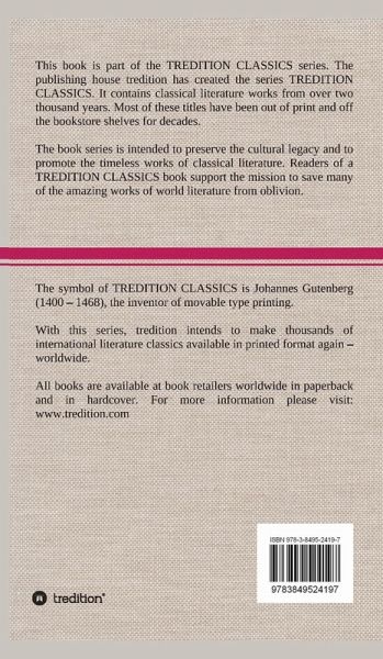 This book (hardcover) is part of the TREDITION CLASSICS. It contains classical literature works from over two thousand years. Most of these titles have been out of print and off the bookstore shelves for decades. The book series is intended to preserve the cultural legacy and to promote the timeless works of classical literature. Readers of a TREDITION CLASSICS book support the mission to save many of the amazing works of world literature from oblivion. With this series, tredition intends to make thousands of international literature classics available in printed format again worldwide.