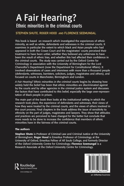 The book begins by showing how widely held the belief has been that ethnic minorities are discriminated against by the courts and by other agencies in the criminal justice system. It discusses the factors that contributed to this belief, including the findings of the Macpherson Report and the notion of 'institutional racism'. It then looks at the institutional setting in which the research took place, the experience of defendants and witnesses, their views about how they were treated by the criminal courts, and the views of others involved in the court process. Final chapters address the issue of sensitivity to ethnicity on the part of judges, magistrates and lawyers.