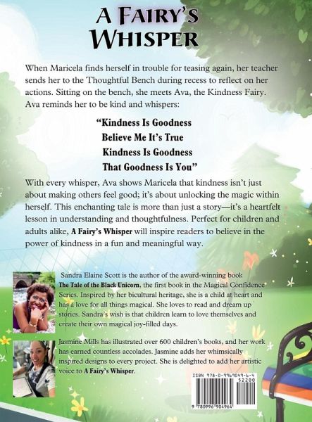 When Maricela finds herself in trouble for teasing again, her teacher sends her to the Thoughtful Bench during recess to reflect on her actions. Sitting on the bench, she meets Ava, the Kindness Fairy. Ava reminds her to be kind and whispers, "Kindness Is Goodness. Believe Me, It's True. Kindness Is Goodness, That Goodness Is You." With every whisper, Ava shows Maricela that kindness isn't just about making others feel good; it's about unlocking the magic within herself. This enchanting tale is more than just a story-it's a heartfelt lesson in understanding and thoughtfulness. Perfect for children and adults alike, A Fairy's Whisper will inspire readers to believe in the power of kindness in a fun and meaningful way.