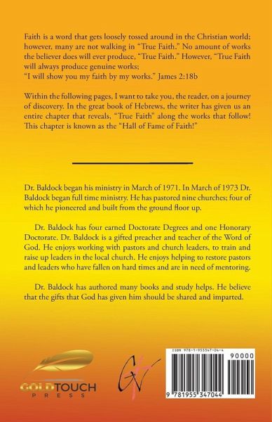 Faith is a word that gets loosely tossed around in the Christian world; however, many are not walking in "True Faith." No amount of works the believer does will ever produce, "True Faith." However, "True Faith will always produce genuine works; "I will show you my faith by my works." James 2:18b Within the following pages, I want to take you, the reader, on a journey of discovery. In the great book of Hebrews, the writer has given us an entire chapter that reveals, "True Faith" along the works that follow! This chapter is known as the "Hall of Fame of Faith!"