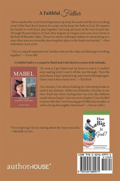 A Faithful Father is the true story of a family who, during the Great Depression and the Dust Bowl years, loses everything except their faith and the father's 1926 Reo car. Without a home for his family of six, the father accepts an offer to live with the owner and share-crop his farm. After struggling four more years during the drought, he makes his car into a pickup, leaves the farm, and uses it to make a living until he is offered an opportunity in Oregon. By trusting in God and working together for three years, the family purchases a farm in Oregon's lush Willamette Valley. You will laugh and cry as you relive the sad and humorous experiences of this family.