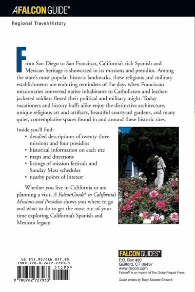 As Spanish authorities colonized Alta California, they established twenty-one Franciscan missions and four forts, or presidios, to bring the native inhabitants of the region under control and to provide for security and defense. Today, the missions and presidios are among California's most popular historic landmarks, and enduring reminders of California's Spanish and Mexican past. A FalconGuide to California's Missions and Presidios is a fun and fascinating tour of the missions and presidios for vacactioners and history buffs alike. This guide includes beautifully descriptive text, a brief history of each site, key festivals, plus information on nearby attractions. Other books in the Exploring series include Big South Fork National River and Recreation Area, Canyonlands and Arches National Park, Cape Hatteras and Cape Lookout National Seashores, Dinosaur National Monument, Florida's Atlantic Coast Beaches, Florida's Gulf Coast Beaches, Glacier National Park, Great Texas Coastal Birding Trail, Gulf Islands National Seashore, Hawaii's Parklands, Mount Helena, Point Reyes National Seashore and Golden Gate National Recreation Area, and Southern California Beaches.