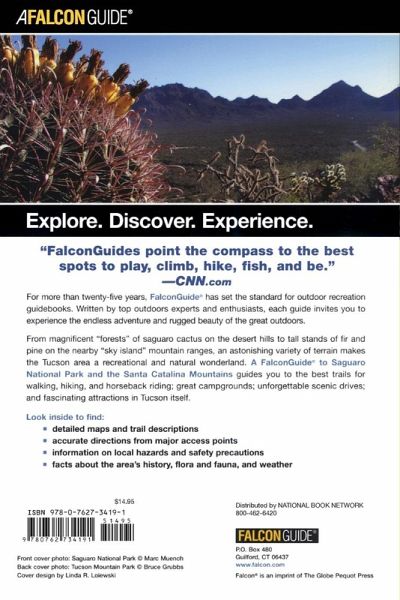 This guide covers the extensive trail networks within the Tucson Mountain and Rincon Mountain units of Saguaro National Park, along with the Pusch Ridge Wilderness and the Santa Catalina Mountains in the Coronado National Forest. Camping, alpine skiing, cross-country skiing and snowshoeing, rock climbing, and mountain biking will also be covered.