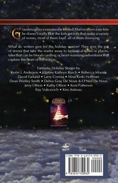 Grandma gives a sweater she knitted, Dad receives a necktie he doesn't really like, the kids get toys that make a variety of noises, most of them loud, all of them annoying. What do writers give for the holiday season? They give the gift of stories that take the reader away to fantastical times or places, tales that can be blood-curdling or heart-warming, adventures that capture the heart of the season. Fantastic Holiday Stories by Kevin J. Anderson ¿ Kristine Kathryn Rusch ¿ Rebecca Moesta ¿ David Farland ¿ Larry Correia ¿ Nina Kiriki Hoffman ¿ Dean Wesley Smith ¿ Debra Gray De Noux & O'Neil De Noux ¿ Jerry Oltion ¿ Kathy Oltion ¿ Kent Patterson ¿ Ray Vukcevich ¿ Kim Antieau.