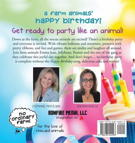 Get ready to party like an animal! Down at the farm, all the rescue animals are excited! There's a birthday party and everyone is invited. With vibrant balloons and streamers, presents with pretty ribbons, and fun and games, there are smiles and laughter all around. Join farm animals Emma Jean, Jellybean, Peanut and the rest of the gang as they celebrate this joyful day together. And don't forget... no birthday party is complete without the Happy Birthday song, delicious cake and wishes!