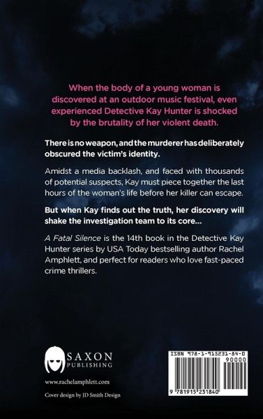 After the music stops, the killing begins... When the body of a young woman is discovered at an outdoor music festival, Detective Kay Hunter's investigation stalls almost as soon as it starts. Because the killer has left no trace, and the victim's identity is unknown. Amidst a media backlash, and faced with thousands of potential suspects, Kay must piece together the last hours of the woman's life before her killer can escape. But when Kay finds out the truth, her discovery will shake her investigation team to its core... A Fatal Silence is the 14th book in the Detective Kay Hunter series from USA Today bestselling author Rachel Amphlett, and perfect for readers who love fast-paced crime fiction.