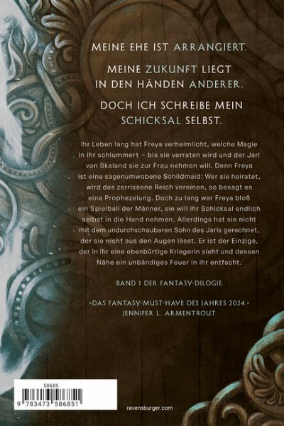Ihr Leben lang hat Freya verheimlicht, welche Magie in ihr schlummert. Bis sie verraten wird und der Fürst der Nordlande sie zur Frau nehmen will. Denn Freya ist eine Schildmaid: Wer sie heiratet, wird das Königreich vereinen. Doch zu lang war Freya ein Spielball der Männer, sie will ihr Schicksal selbst in die Hand nehmen. Allerdings hat sie nicht mit dem undurchschaubaren Fürstensohn gerechnet. Er ist der einzige, der in ihr eine ebenbürtige Kriegerin sieht und ein Feuer in ihr entfacht.